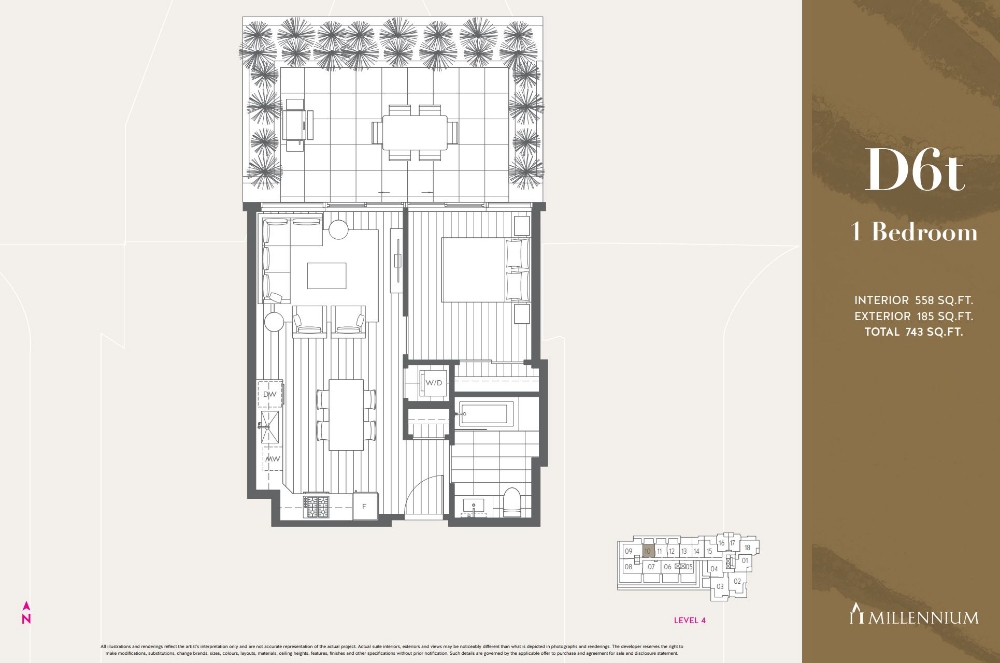 Choose from a selection of 8 x 2-storey townhomes and 154 luxurious condominiums, ranging from an efficient 445-SqFt studio to spacious 3-bedrooms + den up to 1,772 SqFt. Of these, 41 units are adaptable. The tower is crowned with 2 penthouses on the top floor and 11 sub-penthouses on the two levels below.
